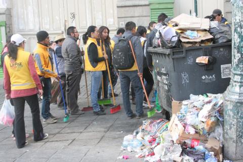 La Alcaldía pide a los vecinos no sacar la basura a la calle porque se crean focos de infección, hasta el jueves porque el viernes comienza el trabajo la empres La Paz limpia.