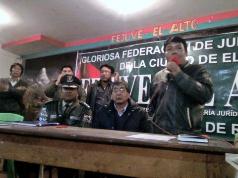 El Viceministro Méndez y el gerente Roberto Rojas se encuentran retenidos en por la Fejuve de El Alto hasta que la Ministra Moreira llegue a la reunión que tenía programada.