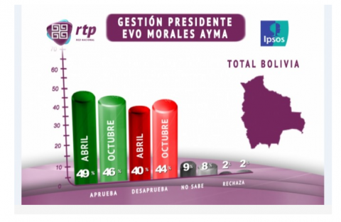 La aprobación a la gestión de Gobierno experimentó una baja de 45% a 42% , según una encuesta de IPSOS, la aprobación del Presidente bajo de 49% a 46% en octubre.