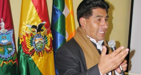 El Ministro de Desarrollo Rural y Tierras, César Cocarico. Anunció que la redistribución de tierras está a favor de las comunidades indígenas y campesinas.