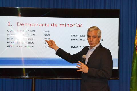 El vicepresidente afirmó que “Bolivia es uno de los países más democráticos del mundo” y que los que dicen que se vive una dictadura son políticos trasnochados, ignorantes, de derecha.