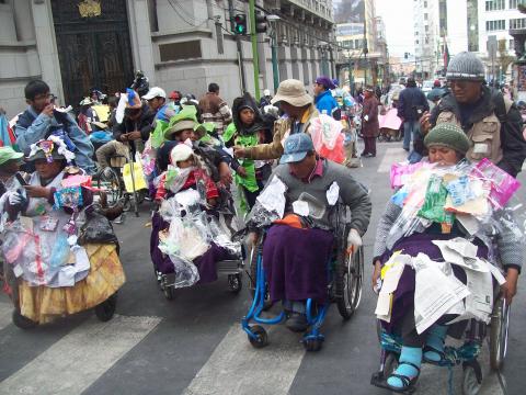 Los movilizados fueron ‘creativos’ a la hora de elaborar sus peculiares prendas. Usaron pañales desechables, cajas de medicamentos, bolsas de plástico, cartones, papeles ysobres de golosinas entre otros elementos.