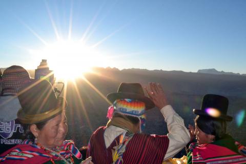 Evo Morales no pudo acudir a la ceremonia ritual en Tiahuanaco, pero la celebración se replicó en su residencia, el vicepresidente estuvo presente en su lugar.