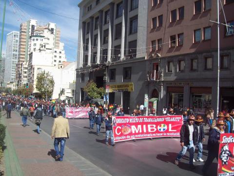La marcha estuvo encabezada por el máximo dirigente Guido Mitma, quien afirmó que si no hay una respuesta la COB analizará quitar el respaldo al Gobierno.