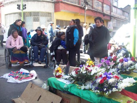 Los principales dirigentes de las personas con discapacidad viajaron hoy hasta la ciudad de Cochabamba para dar apoyo a sus compañeros y familia de los fallecidos.