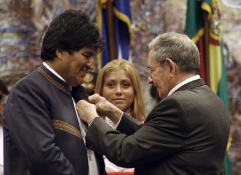 Morales fue recibido en el Palacio de la Revolución por Raúl Castro, quien lo condecoró con la Orden José Martí.