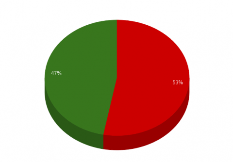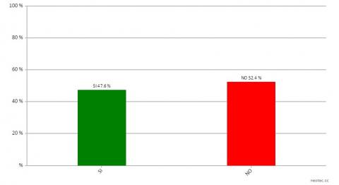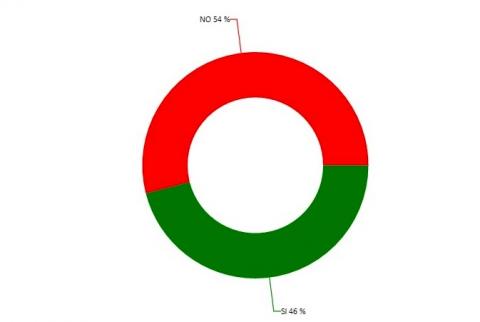 El sistema de transmisión rápida y segura de actas del Tribunal Supremo Electoral (TSE) informa que al 90% de actas verificadas de un total de 29.224 el No tiene el 52,4% y el Sí 47,6%