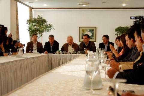 Rubén Costas se reunió hoy con líderes del MDS que se concentraron en la sede de gobierno para afinar su estrategia a favor de la opción ‘No’ a una modificación de la Constitución que permita habilitar al presidente Evo Morales para las elecciones presidenciales en 2019.