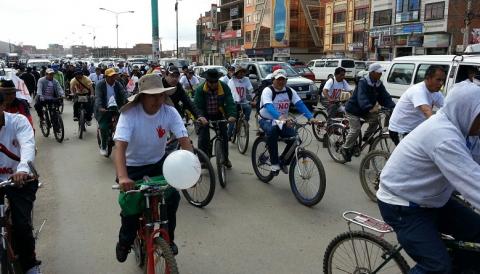 La movilización polítiica se inició a las 8:30. Fue una caravana de ciclistas y marchistas a la cabeza del líder del movimiento Félix Patzi Paco, que empezó en las oficinas de las oficinas de Tránsito de la avenida Juan pablo II y concluyó al mediodía en la plaza Minero, de Villa Santiago Segundo.
