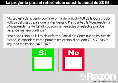 Nueve organizaciones nacionales promoverán la campaña por el NO rumbo al referendo del próximo 21 de febrero, frente a otras cuatro que, lideradas por el Movimiento Al Socialismo, pedirán el SI a la modificación de la Constitución Política del Estado para habilitar al presidente Evo Morales y el vicepresidente Alvaro García Linera para una nueva elección.