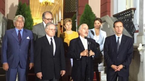 La comitiva de exmandatarios, compuesta por Jorge Quiroga de Bolivia, Andrés Pastrana de Colombia, Laura Chichilla y Miguel Ángel Rodríguez de Costa Rica, Mireya Moscoso de Panamá, y Luis Alberto Lacalle del Uruguay, emitieron el pronunciamiento luego de que la oposición venezolana lograra una victoria en las elecciones legislativas.