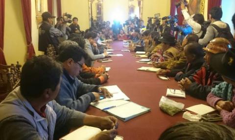 La estructura de movimientos sociales que apoya a Morales se reunió este martes desde las 17.00 en el Palacio de Gobierno con el vicepresidente Álvaro García Linera; el ministro de la Presidencia, Juan Ramón Quintana y el procurador del Estado, Héctor Arce. Tras cuatro horas de debate, anunciaron la determinación de apostar por una reelección más para el Presidente para que pueda tener la posibilidad de gobernar hasta 2025, gestión en la que busca concretar la agenda patriótica. Con esa posición dejaron de lado las propuestas por una reelección para el mandato indefinido.