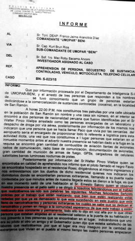 El Ministerio de Gobierno informó que anoche en la población de San Ramón, Beni, tres patrullas antinarcóticos desplegaron una operación policial de captura de una organización criminal compuesta por bolivianos y extranjeros con base en información de inteligencia colectada después de varios meses.