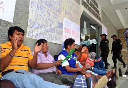 En el municipio de Montero, el candidato del Movimiento Al Socialismo (MAS), Edwin Tupa, decidió ingresar en una huelga de hambre en las puertas del tribunal electoral cruceño. Diez militantes suyos lo acompañan en la medida de presión.