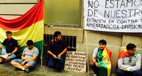 “El pueblo unido, jamás será vencido”, fue el estribillo con el que compatriotas instalaron el piquete de huelga de hambre en inmediaciones del Consulado de Bolivia en Barcelona hoy por la mañana.