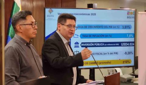 Elaborado por todos los niveles de gobierno y entidades del Estado, el PGE 2025 proyecta una tasa de crecimiento del 3,51%, una tasa de inflación del 7,5%, un precio promedio del barril de petróleo de $us 75,3, un déficit fiscal del -9,2% del PIB y una variación promedio del tipo de cambio oficial de ±10 por ciento.