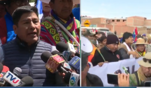 “Denunciamos nacional e internacionalmente que un expresidente está gestando un golpe de Estado, por eso pedimos a las autoridades competentes, por sedicioso y terrorista, porque utilizan dinamitas, golpean al pueblo; por eso, pido a la Justicia, a todas las autoridades competentes en la materia, que este señor debe ir a la cárcel”, dijo Grover García, quien es reconocido por el Gobierno y el Pacto de Unidad como Presidente del MAS.