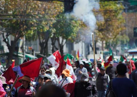 Los maestros marcharon este jueves en La Paz y se enfrentaron a la policía con uso de petardos de alto impacto. Los efectivos policiales respondieron con gases y hasta balines de paintball. En paralelo, otro grupo de educadores acata una huelga de hambre.