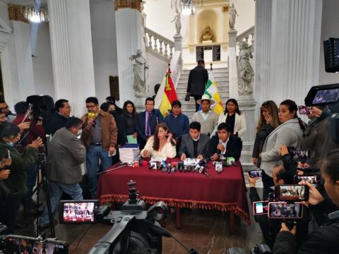 En este caso, el gobernador cruceño Fernando Camacho, el excívico Rómulo Calvo, el rector de la Uagrm, Vicente Cuellar, el vicerrector Reinerio Vargas, y el asesor legal del Comité Interinstitucional José Luis Santisteva son acusados por los delitos de terrorismo, discriminación, atentado contra la libertad del trabajo, atentado contra los servicios públicos y atentado contra la salud.