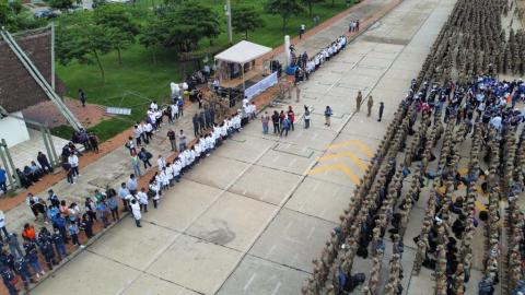 El Ministro de Salud, acompañado del viceministro de Defensa y Cooperación al Desarrollo Integral, Augusto García y miembros de las Fuerzas Armadas, explicó que desde el Cambodromo más de 5.000 personas entre profesionales en salud, personal castrense y civiles, realizarán una intervención integral con el fin de controlar el brote epidémico de dengue.