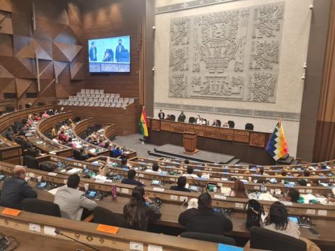 “La democracia boliviana, que recuperamos gracias a la unidad, lucha y conciencia del pueblo en 2020, continúa en riesgo, pues hay grupos que no respetan el voto del pueblo y que pretenden acortar mi mandato. De manera permanente buscan lograr con violencia, odios, confrontación entre hermanos y nuevas formas de golpes de Estado", denunció el Jefe de Estado.