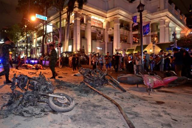 Las fotografías muestran cuerpos tirados en el suelo y un cráter presumiblemente causado por la explosión de una bomba. La policía ha acordonado el área, muy transitada por encontrarse también junto a varios centros comerciales Los atentados terroristas no son frecuentes enBangkok.