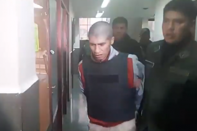 Eliot L.F., uno de los principales implicados en la muerte de Carla Bellot y Jesús Cañisaire, fue enviado al penal de Chonchocoro con detención preventiva tras su audiencia de hoy.