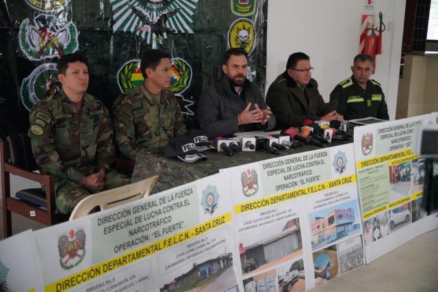 “Hemos podido identificar al jefe de esta organización criminal que ya había sido encontrado en la gestión 2009 con más de una tonelada de cocaína y luego de liberarse su proceso tenía recursos económicos para dedicarse a estas actividades ilícitas y hacerse pasar como empresario dentro del departamento de Santa Cruz”, informó Del Castillo en conferencia de prensa.