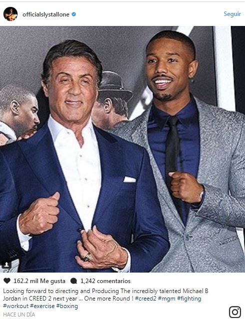“Tengo ganas de dirigir y producir Creed 2 el año que viene con el increíblemente talentoso Michael B. Jordan... ¡Un round más!”, escribió Stallone.